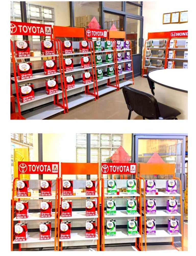 A Display of Engine Oil and Automatic Transmission Fluid by AYE SHWE (AS) Distribution Group Co.,Ltd.